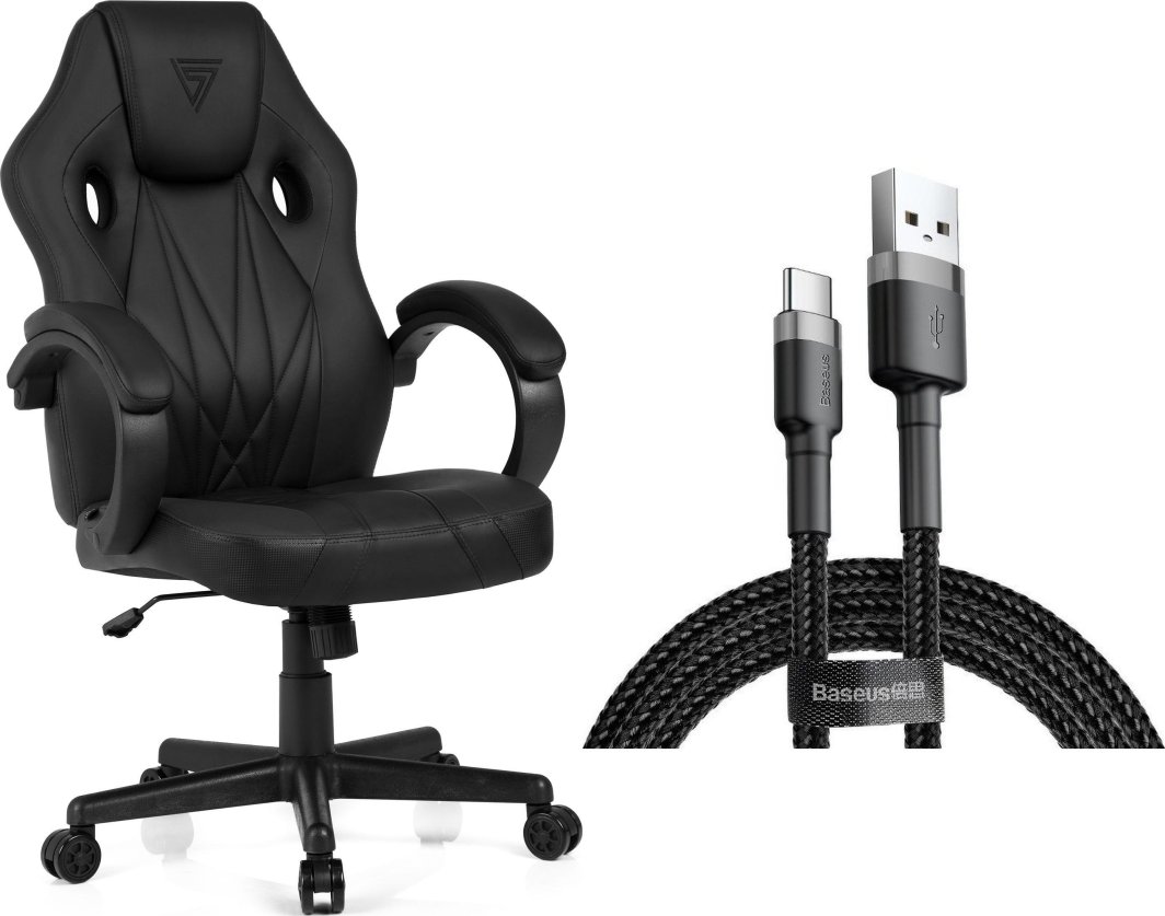 Fotel SENSE7 Prism - skórzany, czarny + kabel usb