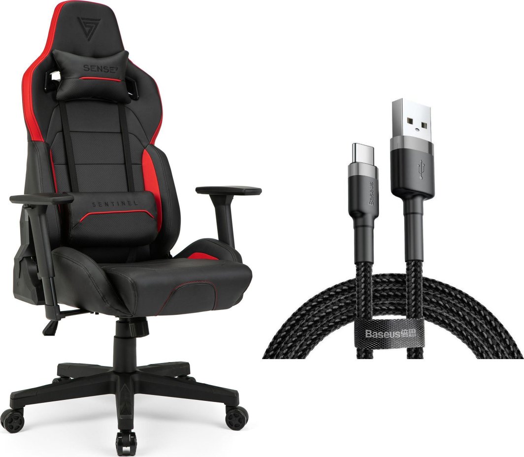 Fotel SENSE7 Sentinel czarny-czerwony + kabel usb