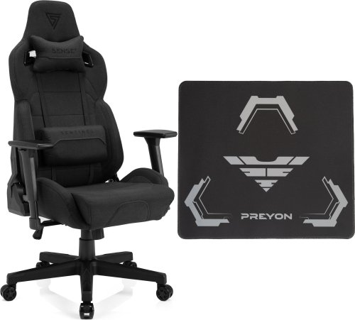 Fotel SENSE7 Sentinel materiałowy czarny + Podkładka PREYON Falcon