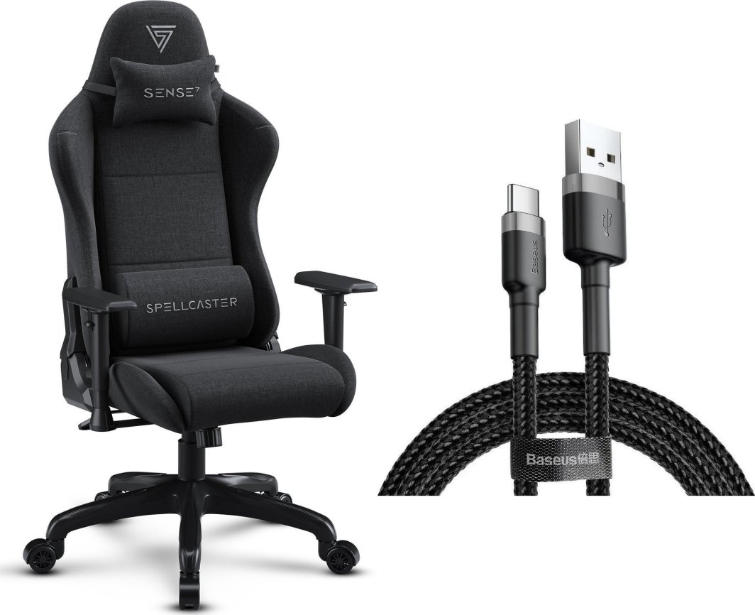 Fotel SENSE7 Spellcaster FUKU materiałowy czarny + kabel usb