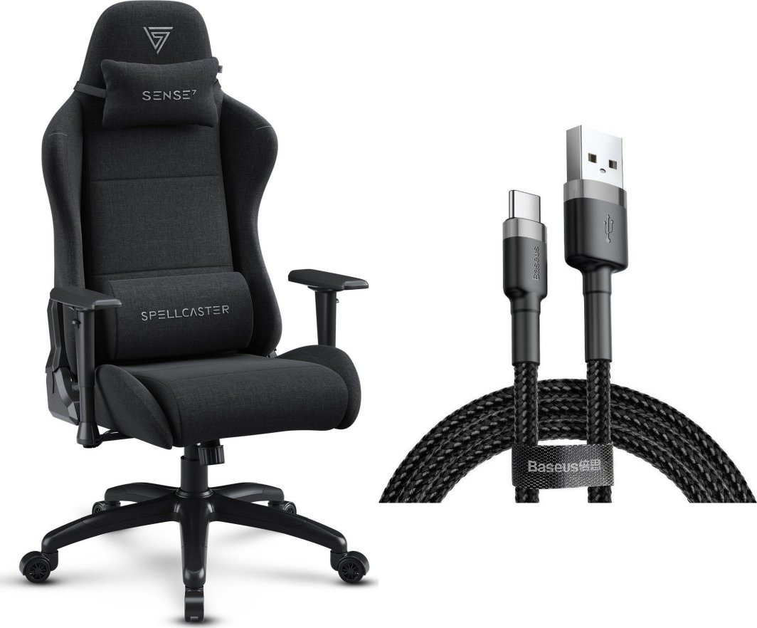 Fotel SENSE7 Spellcaster FUKU XL materiałowy czarny + kabel usb