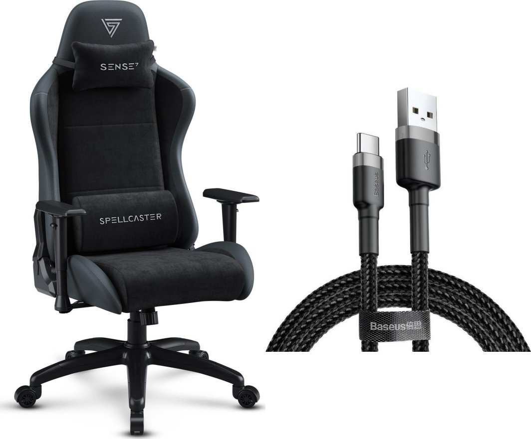 Fotel SENSE7 Spellcaster FUKU XL PU czarny + kabel usb