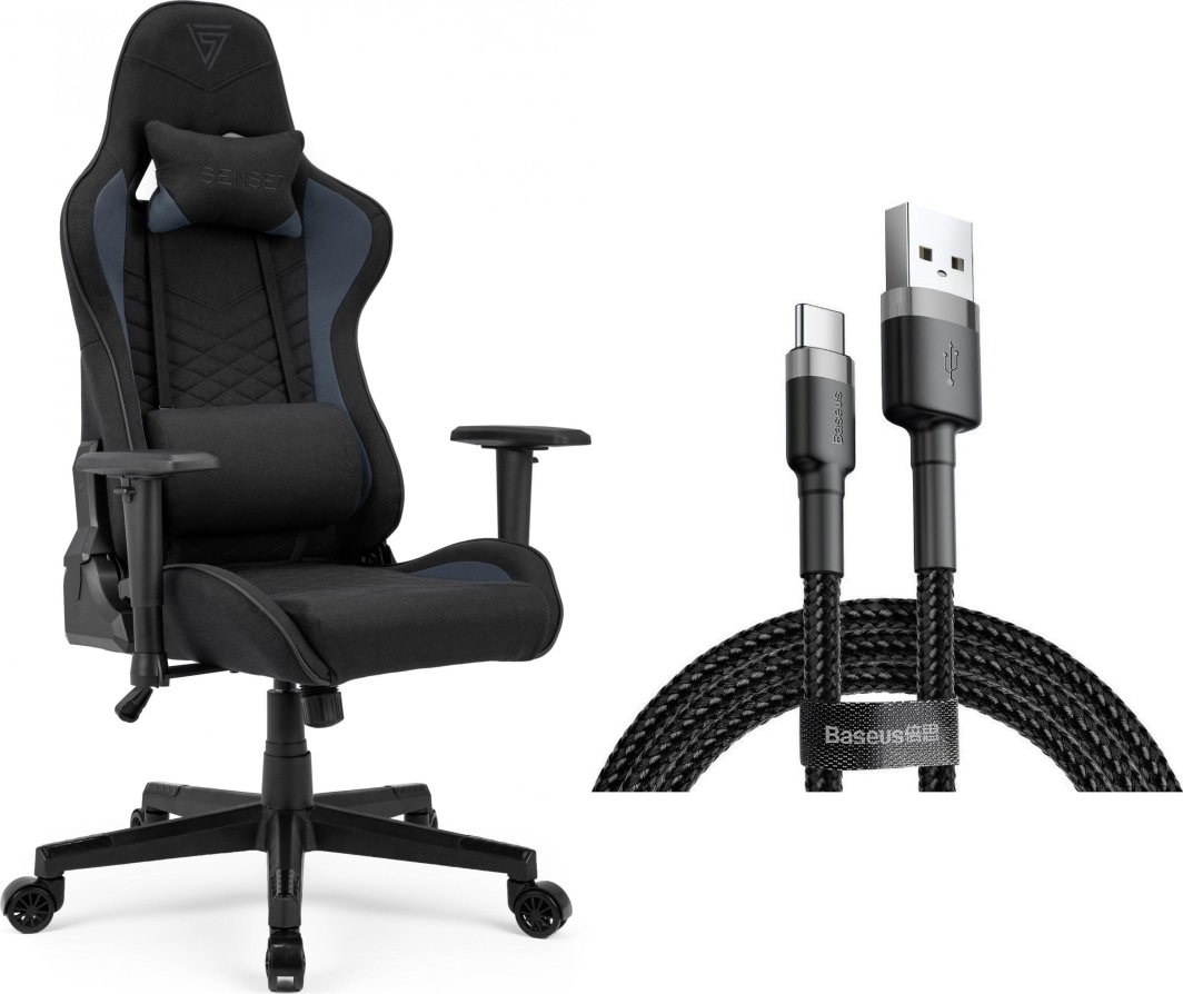 Fotel SENSE7 Spellcaster materiałowy czarno-niebieski + kabel usb