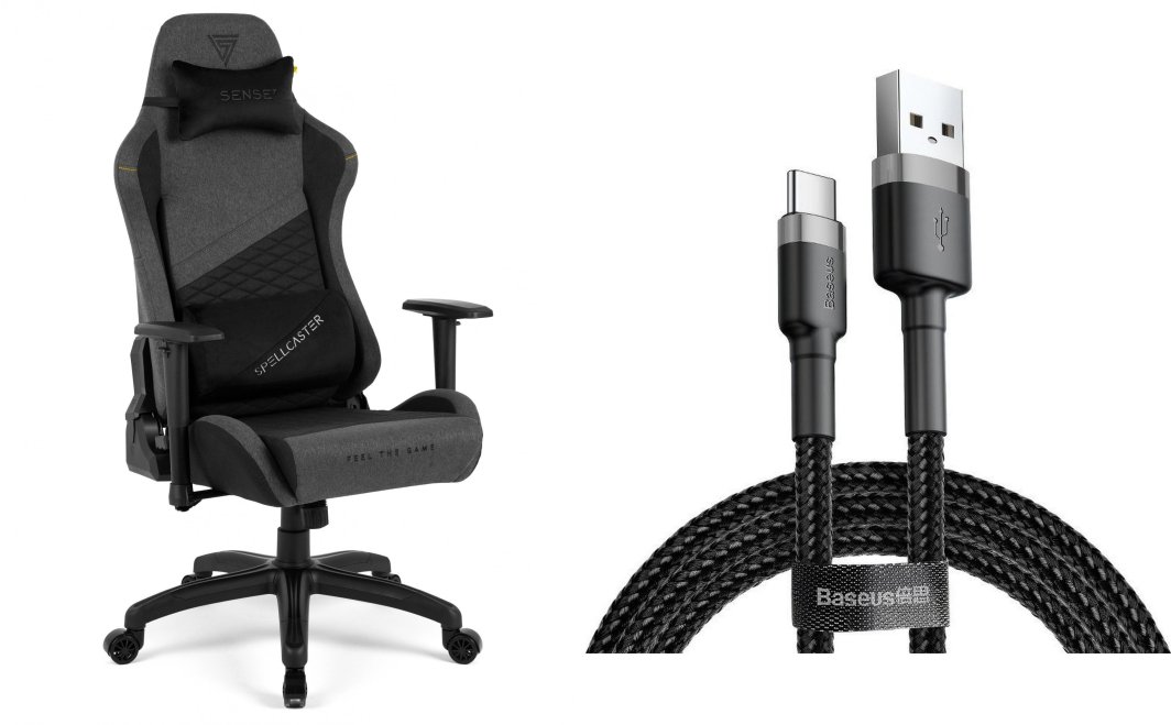 Fotel SENSE7 Spellcaster materiałowy Senshi Edition XL szary + kabel usb