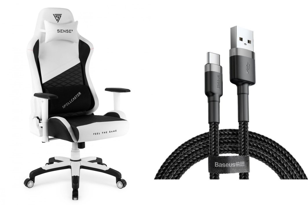 Fotel SENSE7 Spellcaster Senshi Edition XL biały + kabel usb
