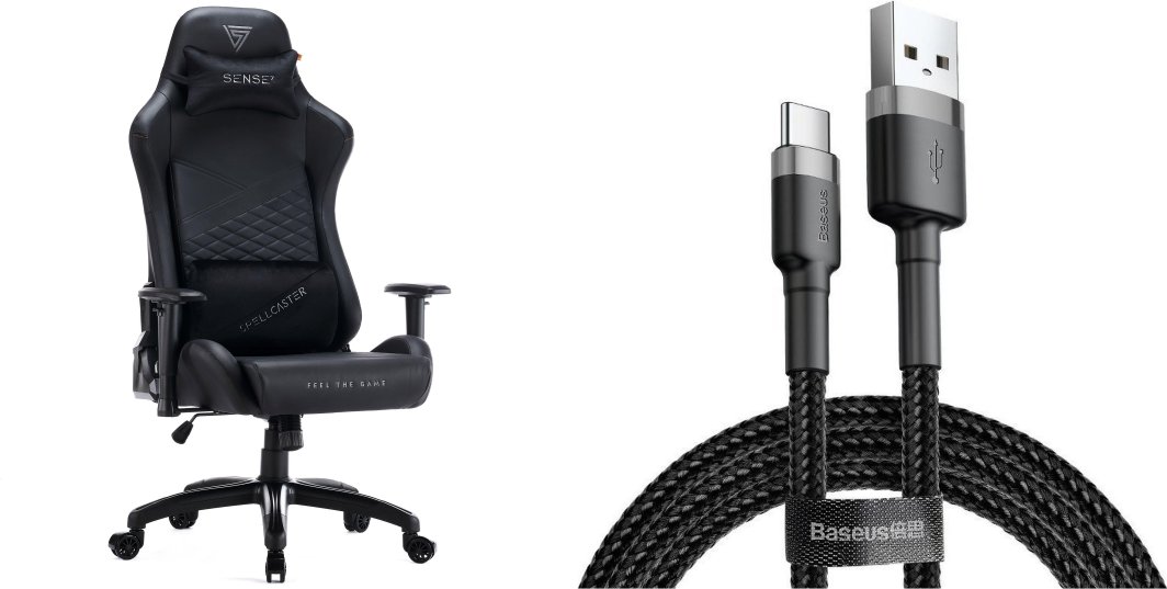 Fotel SENSE7 Spellcaster Senshi Edition XL czarny + kabel usb