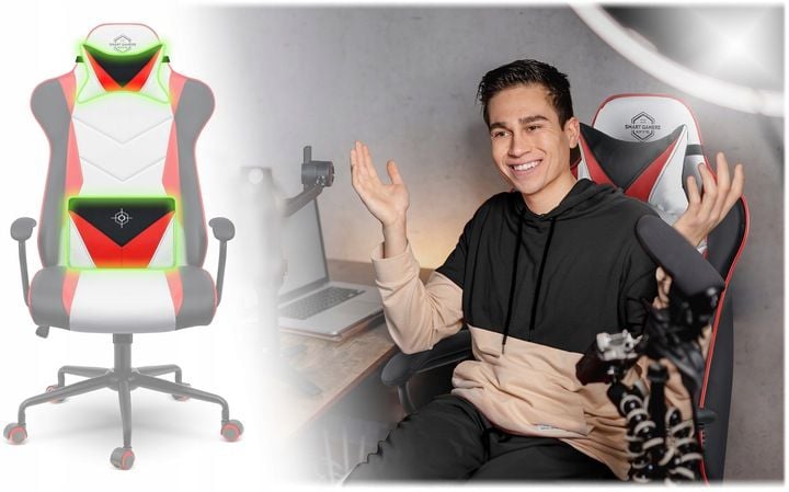 Wyprofilowana poduszka lędźwiowa oraz poduszka pod głowę pomagają utrzymać ergonomiczną, bezpieczną postawę. Poduszki dopasowują się do kształtu Twojej sylwetki, gwarantując wygodę podczas siedzenia.