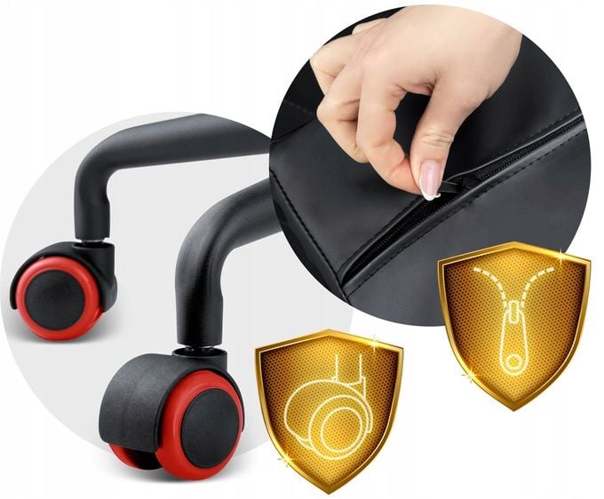 Poduszki można wyjąć z pokrowca dzięki wszytemu zamkowi, a solidna metalowa podstawa wyposażona jest w nylonowo - kauczukowe kółka, które poruszają się cicho i nie rysują podłogi.