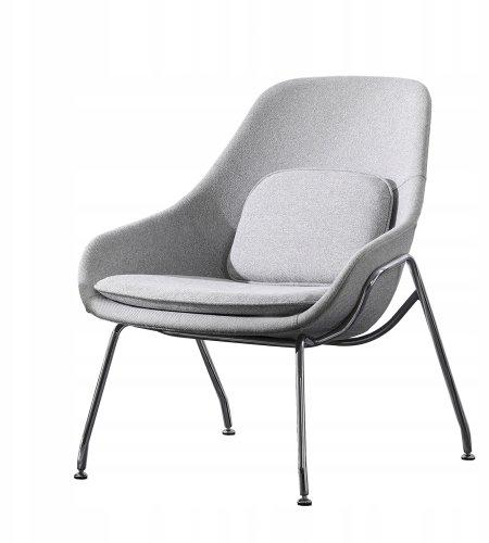 Fotel wyróżnia się metalowymi chromowanymi nogami, które nadają mu lekkości oraz nowoczesnego charakteru. Ten element nie tylko podkreśla estetykę mebla, ale także zapewnia stabilność i trwałość, co czyni go idealnym wyborem do codziennego użytku.