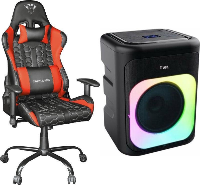 Fotel Trust GXT708R RESTO Czerwony (24217) + Głośnik Bluetooth Azura Czarny