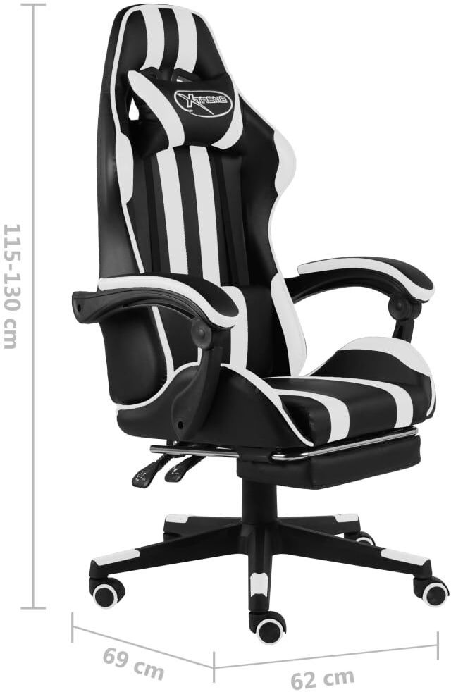 Wysokość można szybko ustawić zgodnie z własnymi wymaganiami, a konstrukcja obrotowa w zakresie 360 stopni i 5 kółek ułatwiają poruszanie się. W pozycji całkowicie rozłożonej użytkownik zdaje się unosić w powietrzu, co jest idealne do gier. Odchylane krzesło znacznie podnosi poziom komfortu dzięki zagłówkowi, podnóżkowi, poduszce lędźwiowej i podłokietnikom.