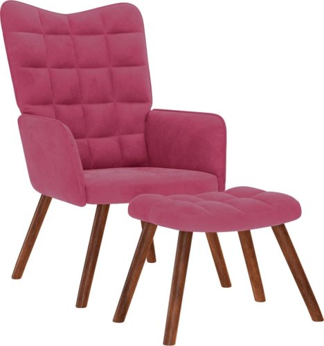Fotel z podnóżkiem, winna czerwień, obity aksamitem