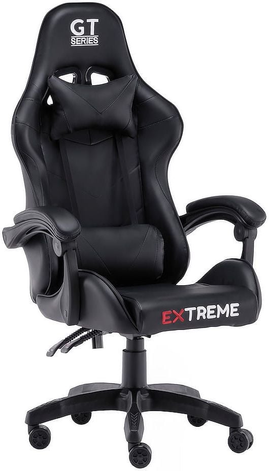 Fotele Extreme GT All Black to najwyższej jakości fotele dla graczy z płynną regulacją oparcia. Makra Extreme charakteryzuje się wysoką jakość materiałów jakich użyto do produkcji tych jakże często energicznie i długo użytkowanych foteli. Wielogodzinne granie na tym fotelu jest prawdziwą przyjemnością, a dodatkowe, regulowane poduszki podpierające głowę i lędźwie tylko potęgują poczucie wysokiego komfortu.