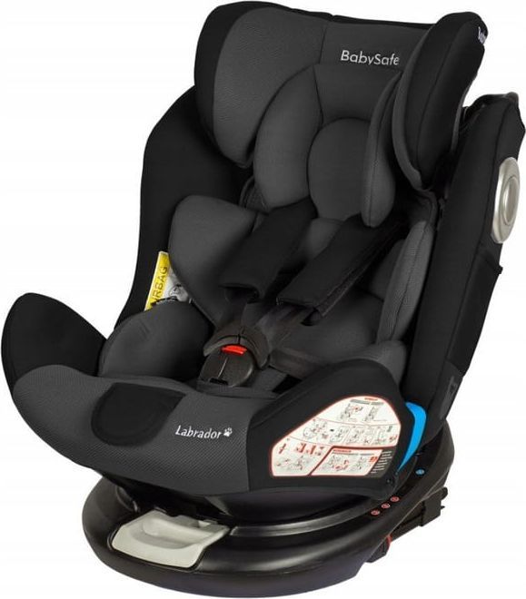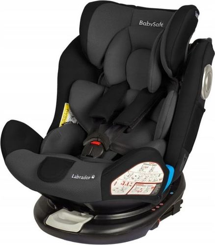 BabySafe Fotelik Labrador 0-36kg Grey-Black Wielu rodziców poszukuje fotelika w którym bezpiecznie i wygodnie może podróżować dziecko praktycznie przez cały okres dorastania. Dla nich stworzony został fotelik Labrador. Przez pierwsze 5 lat życia (do osiągnięcia 18 kg wagi) dzieci mogą podróżować w najbezpieczniejszej pozycji tyłem do kierunku jazdy. Niezrównany komfort zapewnia dwudzielna wkładka redukcyjna dzięki której można dopasować fotelik do dziecka na każdym etapie rozwoju. Labrador posiada obrotową bazę Isofix. Dzięki niej dziecko podróżujące tyłem do kierunku jazdy może bardzo wygodnie umieścić w foteliku. Bez wypinania fotela, wystarczy tylko zwolnić blokadę obrotu i fotelik jest już przodem do drzwi auta. Proste?… Nie genialne! Pomyśl o ile łatwiej będziesz mógł zapiąć w foteliku swoje maleństwo. Podróż przodem do kierunku jazdy to nowy etap w rozwoju dziecka. Fotelik Labrador jest doskonale przygotowany do spełnienia wszystkich oczekiwań małego pasażera. Po wyjęciu wkładki redukcyjnej można docenić obszerność skorupy. Wygodę w każdych warunkach zapewni 3-stopniowa regulacja konta nachylenia oparcia oraz 7-stopniowa regulacja wysokości zagłówka. Nr oferty xSale 8077955