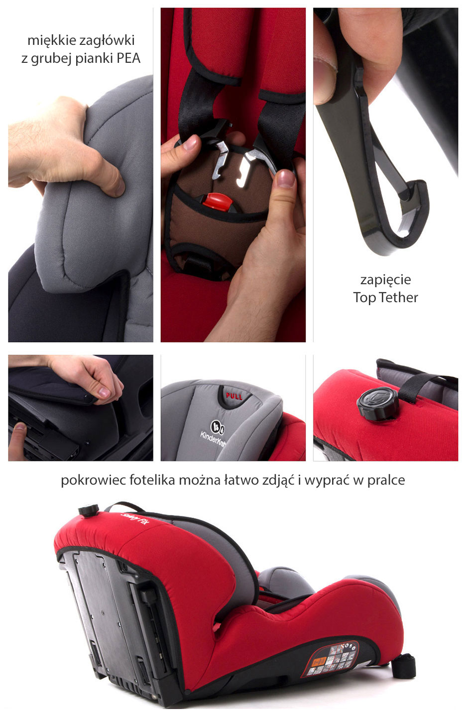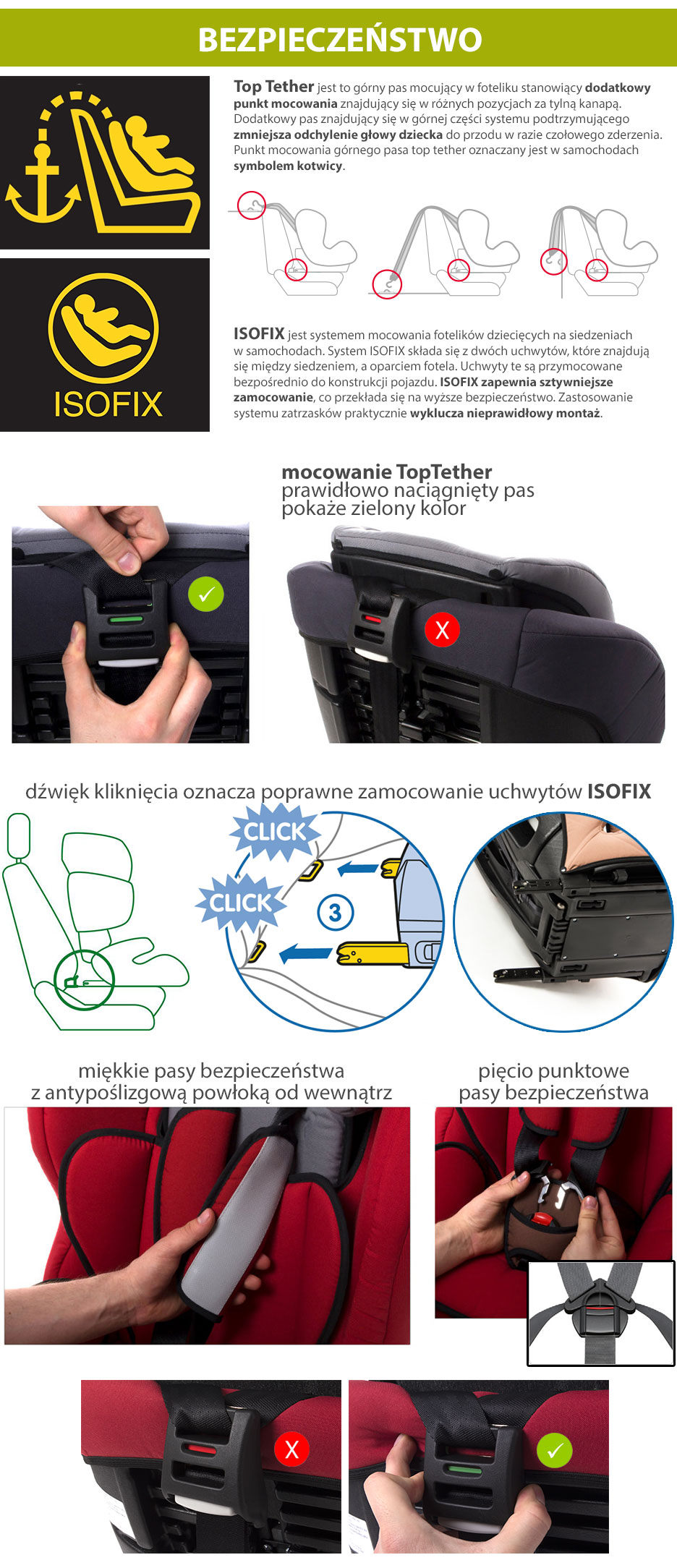 ISOFIX, a także technologii TopTether (górnego paska mocującego).