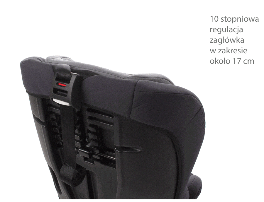 • Płynna regulacja pokrętłem kąta nachylenia fotelika w celu dostosowania do oparcia w samochodzie (zakres około 5 cm)