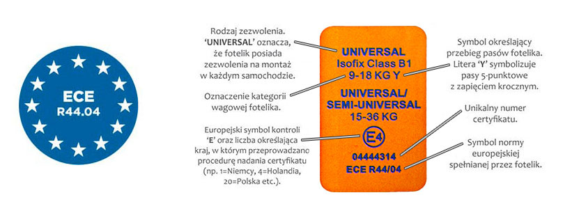 ECE R44/04 obowiązującą w Polsce oraz Unii Europejskiej.