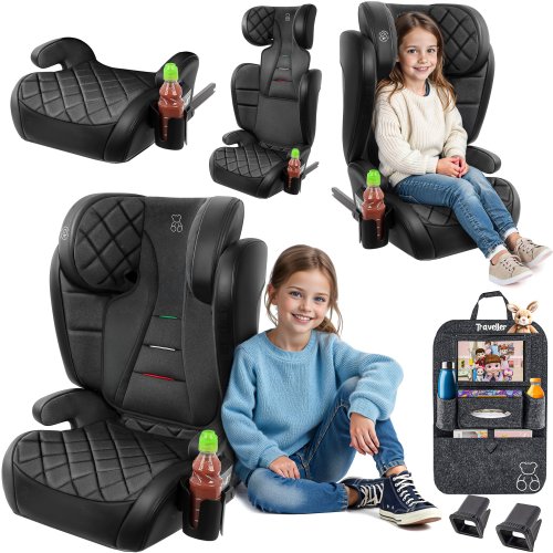 Fotelik EZIO jest wyposażony w praktyczny organizer samochodowy marki TRAVELLER, który ułatwia przechowywanie niezbędnych akcesoriów w trakcie podróży. Dzięki temu wszystko, co potrzebne, jest zawsze w zasięgu ręki.