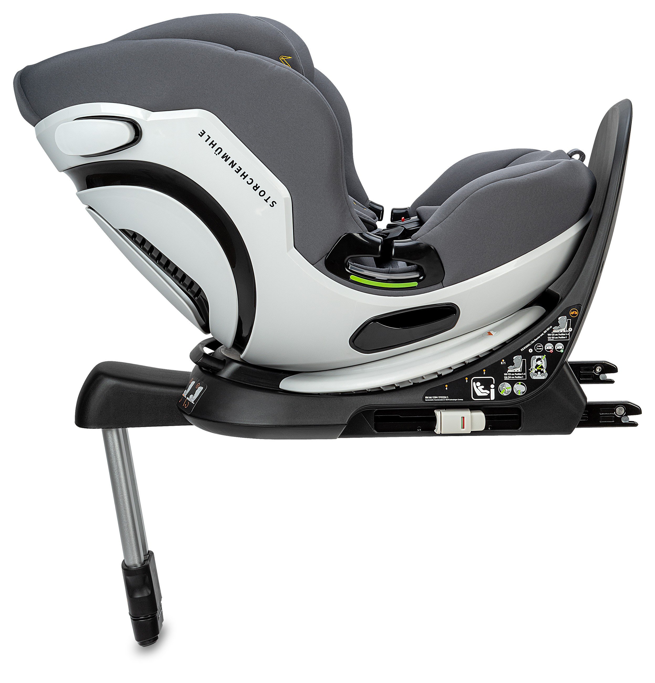Instalacja jest łatwa i bezpieczna dzięki Isofix w połączeniu z noga wypierającą. Od wzrostu 100 cm (najpóźniej od 105 cm), przodem do kierunku jazdu, składasz nogę i używasz Isofix w połączeniu z 3-punktowym pasem samochodowym lub tylko 3-punktowym pasem do jego zamocowania.