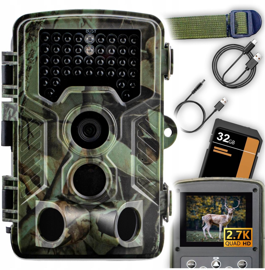 FOTOPUŁAPKA KAMERA LEŚNA MYŚLIWSKA 2K 34 DIODY 56MPx ZESTAW
