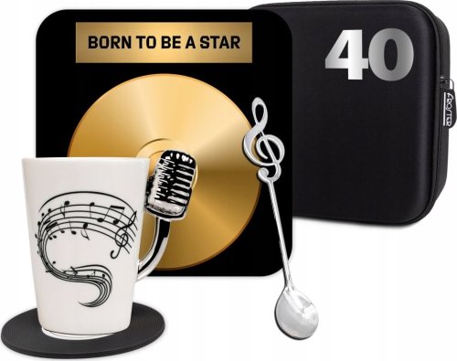 Zestaw "Born to Be a Star" to doskonały prezent dla każdego miłośnika muzyki, który marzy o byciu gwiazdą. W skład zestawu wchodzi stylowy kubek z motywem nut, który doskonale sprawdzi się podczas porannej kawy lub herbaty, oraz designerska podkładka w kształcie płyty winylowej, nadająca całości unikalnego charakteru. Do zestawu dołączona jest również łyżeczka z motywem muzycznym. Całość jest zapakowana w eleganckie i praktyczne etui, co sprawia, że ten zestaw jest zarówno oryginalnym, jak i funkcjonalnym prezentem. Napis "Born to Be a Star" symbolizuje miłość do muzyki i marzenia o byciu gwiazdą, co czyni ten upominek doskonałym wyborem dla wszystkich, którzy kochają muzykę i dostarczają sceniczne emocje.
