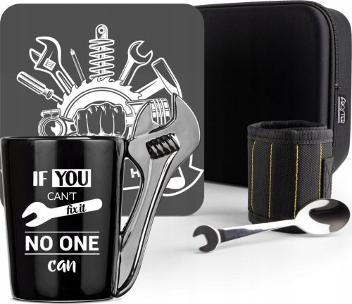 Kubek wchodzący w skład zestawu to nie tylko praktyczny element, ale również świetny gadżet dla każdego majsterkowicza. Z jednostronnym nadrukiem z hasłem "If you can't fix it, no one can", dodaje odrobinę humoru do codziennych napraw. Wykonany z ceramiki, kubek ma pojemność 400 ml, co czyni go idealnym do ulubionych napojów podczas pracy.