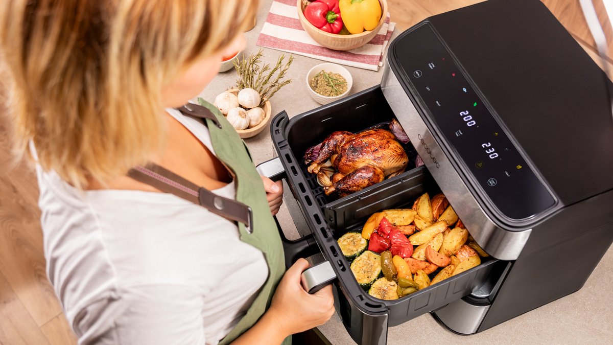 Jako frytkownica beztłuszczowa, urządzenie wykorzystuje cyrkulację gorącego powietrza do przygotowywania potraw, które tradycyjnie wymagały głębokiego oleju. Możesz cieszyć się ulubionymi frytkami, nuggetsami czy warzywami w panierce, redukując ilość spożywanych kalorii nawet o kilkadziesiąt procent. Potrawy pozostają wyjątkowo chrupiące na zewnątrz i delikatne w środku, co stanowi zdrowszą alternatywę dla klasycznego smażenia. To doskonałe rozwiązanie dla osób dbających o linię, które nie chcą rezygnować z przyjemności jedzenia.