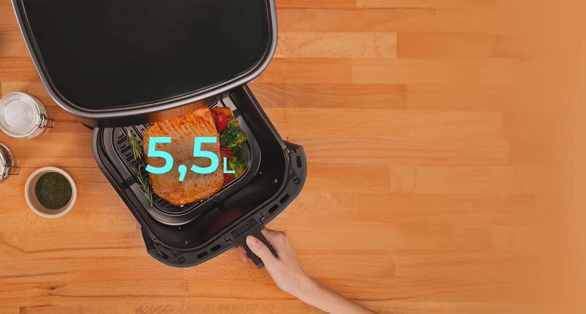 ⭐ Dzięki pojemności 5.5 litrów frytkownica pozwala na przygotowanie większych porcji jedzenia, idealnych dla rodzinnych posiłków lub spotkań z przyjaciółmi. Funkcja regulacji czasu pieczenia, aż do 60 minut, pozwala precyzyjnie kontrolować proces gotowania i dostosować go do własnych preferencji smakowych. Dodatkowo, urządzenie wyposażone jest w system ochrony przed przegrzaniem.