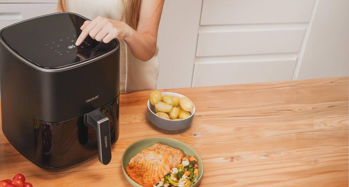 ⭐ Cecotec Cecofry Fantastik 5500 to innowacyjna frytkownica, która pozwala przygotować ulubione dania w zdrowszej wersji. Dzięki technologii PerfectCook gorące powietrze równomiernie cyrkuluje wokół potraw, sprawiając, że stają się chrupiące z zewnątrz i soczyste w środku. Użycie jednej łyżki oleju lub całkowita rezygnacja z tłuszczu sprawia, że każdy posiłek staje się mniej kaloryczny, idealny dla osób dbających o zdrową dietę.