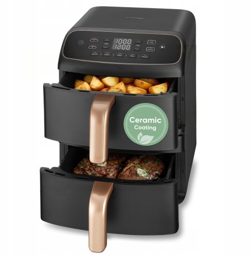 Frytkownica Cosori Turbo Tower Compact zapewnia szybsze i równomierne gotowanie dzięki zastosowanej technologii podwójnej mocy. Dzięki temu potrawy są idealnie chrupiące na zewnątrz, a jednocześnie soczyste w środku.