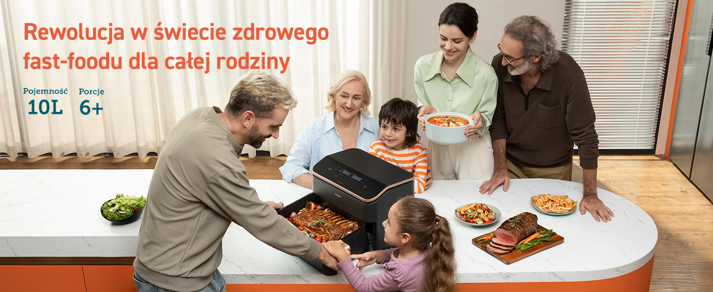 Cosori Dual Blaze TwinFry to innowacyjna frytkownica beztłuszczowa, która przenosi domowe gotowanie na nowy, wyższy poziom. Dzięki imponującej pojemności 10 litrów oraz technologii Dual Blaze z podwójnymi elementami grzewczymi, umożliwia przygotowanie dużych, równomiernie upieczonych porcji bez konieczności obracania jedzenia. Jest to idealne rozwiązanie dla rodzin i osób ceniących sobie zarówno zdrowe odżywianie, jak i wygodę oraz oszczędność czasu w kuchni. To wszechstronne urządzenie zastępuje wiele innych sprzętów, oferując szereg programów do smażenia, grillowania, pieczenia i suszenia.