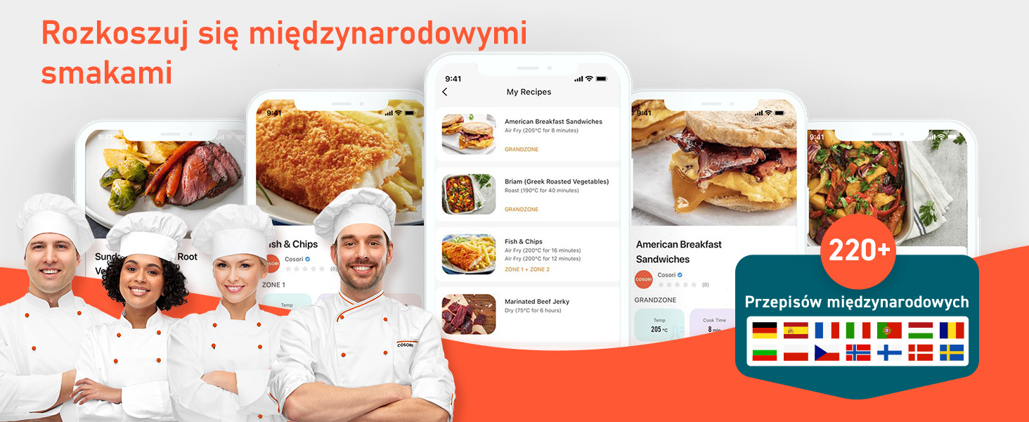 Sterowanie frytkownicą odbywa się za pomocą intuicyjnego panelu dotykowego oraz, co jeszcze wygodniejsze, za pośrednictwem aplikacji mobilnej VeSync. Aplikacja umożliwia zdalne ustawienie parametrów gotowania, monitorowanie procesu i dostęp do bogatej bazy ponad 100 przepisów kulinarnych, przygotowanych przez szefów kuchni Cosori. Inteligentne funkcje, takie jak automatyczne wyłączanie po zakończeniu programu i precyzyjna kontrola temperatury, zapewniają bezpieczeństwo i powtarzalność doskonałych rezultatów. Gotowanie nigdy nie było tak proste i interaktywne.