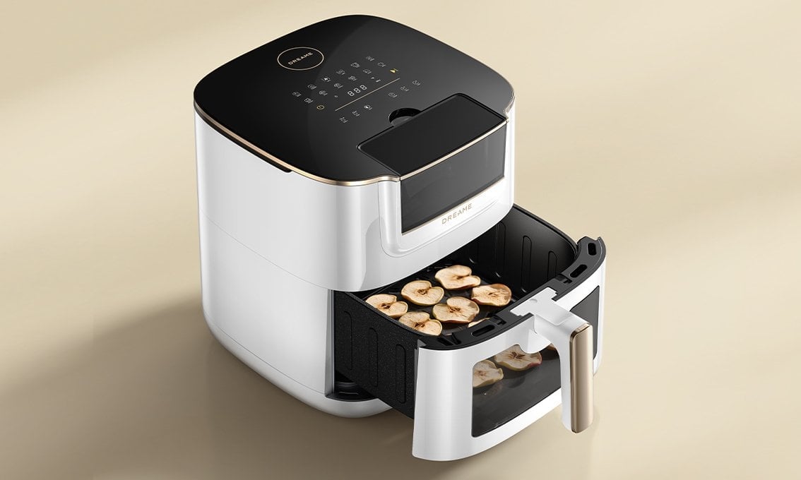 Urządzenie umożliwia suszenie owoców w temperaturze od 50 do 65°C z dokładnością do +/-0,5°C, co pozwala zachować ich naturalny smak. Program analizy wilgotności kontroluje stopień wysuszenia produktów. Frytkownica Dreame Tasti AF30 pozwala osiągnąć ponad 80% ubytku wody w ciągu około 3 godzin. Teraz z łatwością przygotujesz domowe jabłka, chipsy z warzyw czy dodatki do granoli, które wolne od sztucznych dodatków.