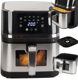 Frytkownica została wyposażona w przezroczyste okno, które umożliwia obserwację procesu gotowania bez potrzeby otwierania urządzenia. Dzięki temu, ciepło nie ucieka, a potrawy są równomiernie pieczone.