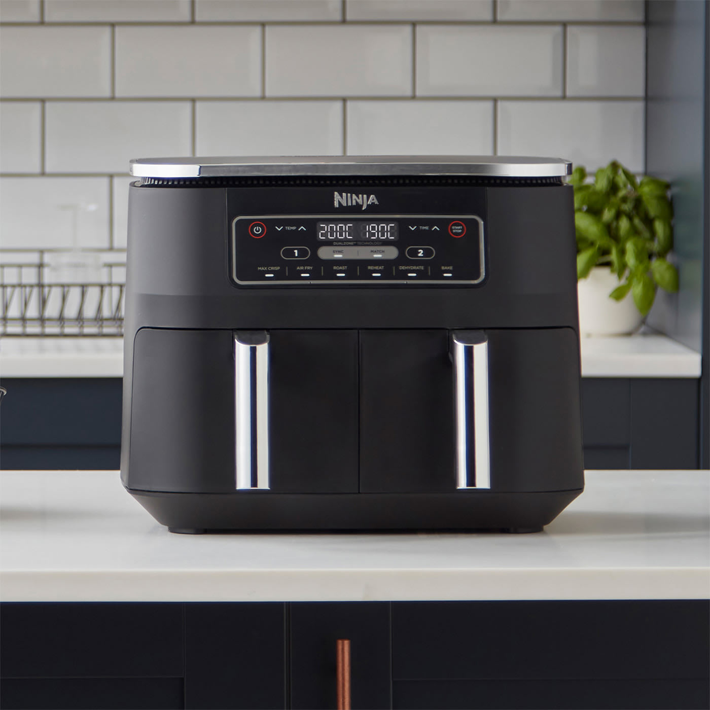Pobudź swoją wyobraźnię, korzystając z 6 funkcji gotowania: Air Fry (Smażenie Beztłuszczowe), Max Crisp (Maksymalna Chrupkość), Roast (pieczenie), Bake (wypieki), Reheat (odgrzewanie) oraz Dehydrate (Suszenie). Dostosowuj za pomocą zmiennych regulatorów temperatury. Gotowanie zamrożonych składników, które uzyskują chrupkość w kilka minut.