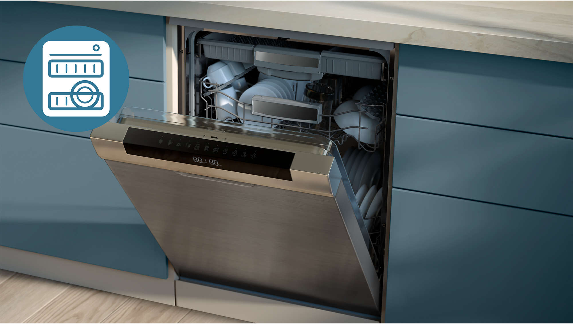 Philips Ovi Stacked Dual Basket został zaprojektowany z myślą o optymalizacji miejsca na blacie kuchennym, zajmując do 40% mniej miejsca w porównaniu do standardowych modeli o podobnej pojemności. Szuflada posiada dwa solidne, poziome uchwyty, które zapewniają stabilny chwyt i bezpieczne manewrowanie nawet przy pełnym obciążeniu urządzenia.