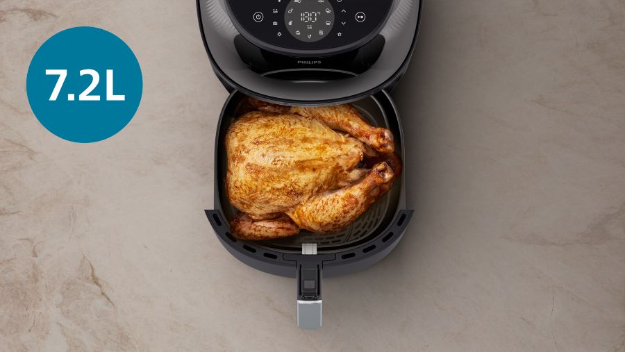 Opatentowana technologia RapidAir Plus z unikatową konstrukcją w kształcie gwiazdy pozwala na szybszą cyrkulację gorącego powietrza wokół i w środku żywności, zapewniając równomierne gotowanie wewnątrz i na zewnątrz, a tym samym smaczne domowe posiłki w czasie krótszym o 30%.