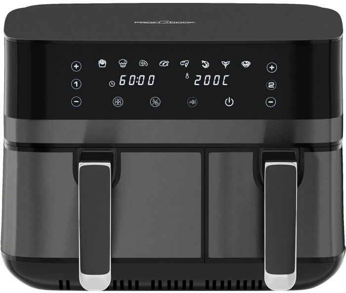 Frytkownica beztłuszczowa ProfiCook 501295 frytkownica Podwójny 9 l Autonomiczny Czarny, Srebrny