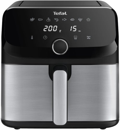 Model EY855D10 wyróżnia się misą o pojemności aż 7,5 litra, co pozwala na jednorazowe przygotowanie porcji dla nawet 8 osób. Wewnątrz bez trudu zmieści się cały kurczak o wadze do 2 kg, pizza o średnicy 24 cm lub zestaw 9 muffinek. Mimo tak dużej przestrzeni roboczej, konstrukcja urządzenia została zoptymalizowana pod kątem gabarytów zewnętrznych, dzięki czemu frytkownica zajmuje niewiele miejsca na blacie kuchennym.