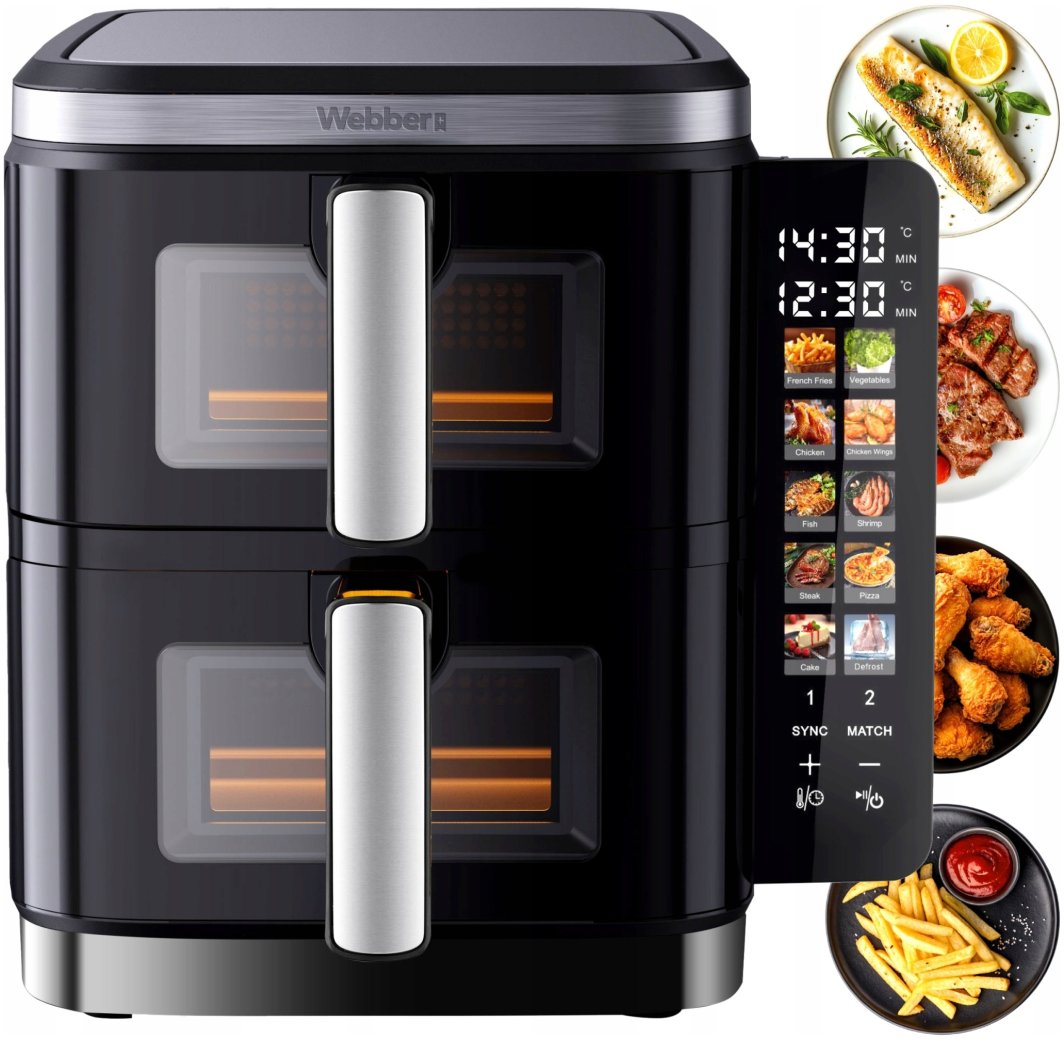 FRYTKOWNICA PODWÓJNA PIONOWA BEZTŁUSZCZOWA AIR FRYER 2800W 11L XXL WEBBER