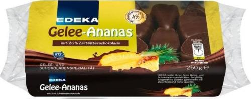 Składniki: cukier, syrop glukozowy, 20% gorzkiej czekolady (cukier, miazga kakaowa, masło kakaowe, emulgator: lecytyny; ekstrakt waniliowy), woda, 4% koncentrat soku z ananasa, zakwaszacz: kwas cytrynowy; Środek żelujący: agar-agar; naturalny aromat ananasowy z innymi naturalnymi aromatami. Produkt może zawierać śladowe ilości ORZECHÓW, ORZECHÓW ORZECHOWYCH, GLUTENU, MLEKA i SOJ.
