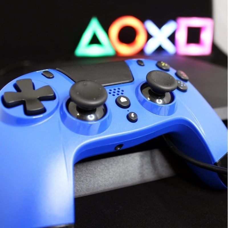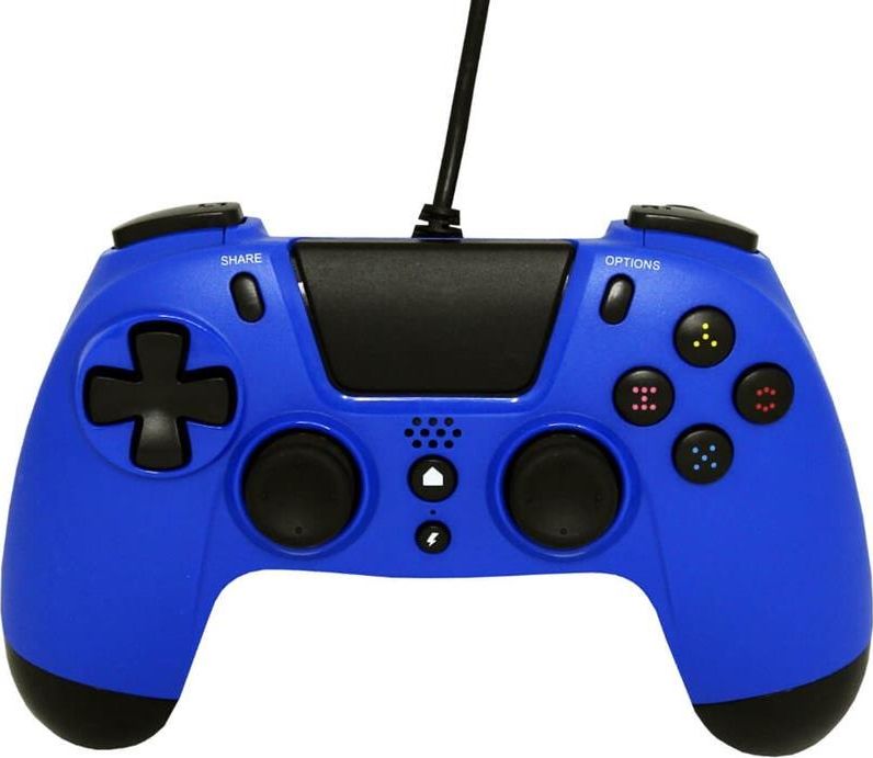 Intensywnie niebieski przewodowy kontroler klasy premium z wpadającymi w oko czarnymi akcentami oraz niecodziennym wzorem przycisków akcji kompatybilny jest z konsolą PS4, PS4 PRO i PS4 Slim oraz PC. Ergonomiczny kształt oraz optymalnie rozłożone przyciski bazowane są na klasycznym padzie Playstation. Pad znakomicie leży w dłoniach, a dzięki wysokiej jakości materiałom wytrzyma z nami naprawdę długi czas.