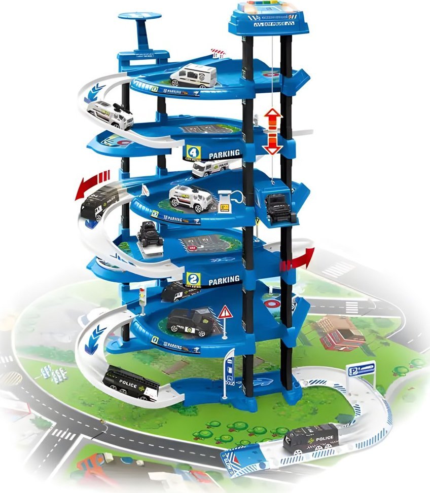 Garaż samochodowy to zabawka, która spodoba się wszystkim małym kierowcom. Dzięki aż 5 piętrom, Twój mały miłośnik motoryzacji spędzi długie godziny zabawy na parkowaniu i manewrowaniu swoimi autami, a realistyczne elementy zachęcą do tworzenia własnych historii. Garaż to z całą pewnością świetne uzupełnienie domowej kolekcji samochodów, dzięki niemu zabawa będzie dawała jeszcze więcej frajdy.