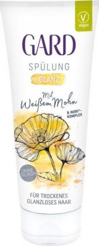 Odżywka GARD Glanz nadaje włosom blask. Zawiera cenne składniki takie jak ekstrakt z nasion białego maku oraz odżywczy kompleks nori, pozyskiwany z czerwonych alg. Wspomaga pielęgnację, wygładza włosy, oraz nadaje zdrowy połysk Odżywcze esencje uelastyczniają włosy i chronią je przed wysuszeniem. Nie zawiera olejów silikonowych. Nie obciąża włosów. Częstotliwość stosowania: dowolnie Działanie: dodające blasku, nawilżające, odżywcze EAN: 4013162030354 Gramatura: ml Henna: nie Konsystencja: odżywka Linie elitarne: nie Pojemność: 200 Płeć: damski Rodzaj włosów: do wszystkich rodzajów Słońce: nie