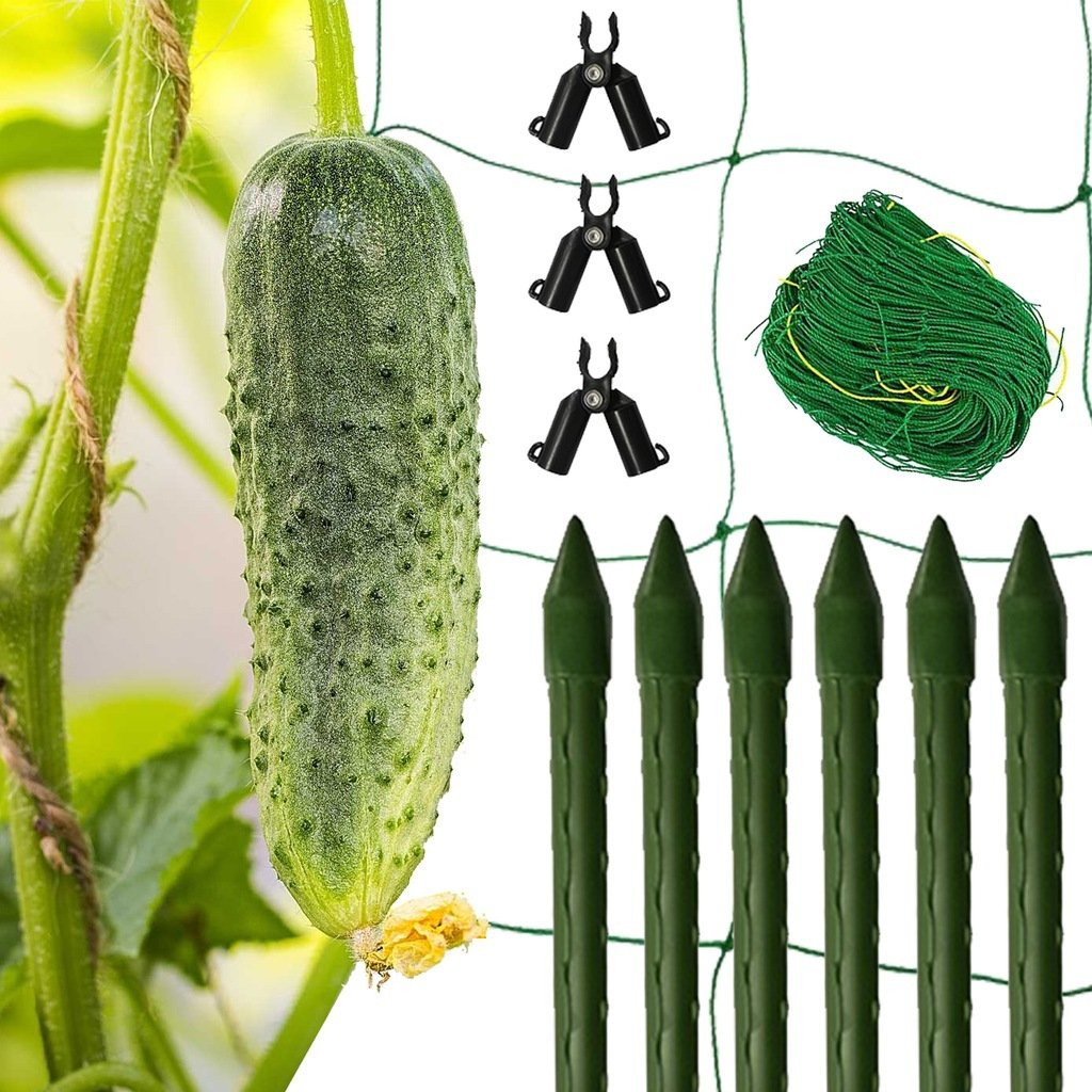 GardenPlus Podpora z siatką na pomidory - Stelaż ogrodowy na pnącza 11mm 1,5x2,6m