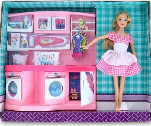 Zestaw lalka z akcesoriami. Z efektami świetlnymi i dźwiękowymi W zestawie: lalka w stroju, szafki z pralką, suszarką, pojemniki z detergentami, deska do prasowania. Bądź gotowa na wielkie pranie. Wymiary opakowania: 32 x 40 x 10,5 cm Baterie: 2 x 1,5V AA (brak w zestawie). Wiek: 3+