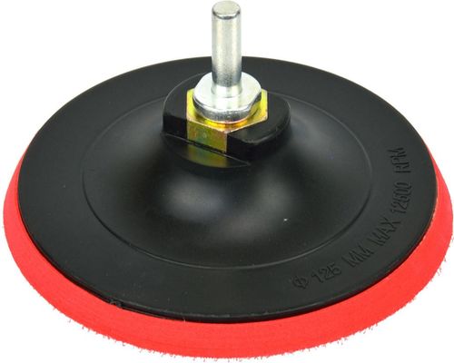 Dysk na rzep 125 mm na szlifierkę kątową / wiertarkę Przeznaczony do szlifierek kątowych z gwintem mocującym M14 . Dołączony do zestawu adapter umożliwia montaż na wiertarce wyposażonej w głowicę zaciskową. Mocny rzep gwarantuje pewne mocowanie tarcz do szlifowania, polerowania. Cechy produktu średnica - 125 mm mocowanie na gwint M14x2; adapter na wiertarkę maksymalna prędkość obrotowa - 12 500 rpm