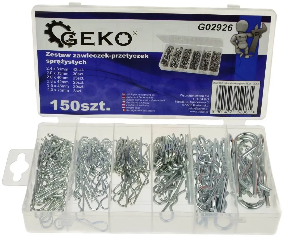 Geko Uniwersalny zestaw zawleczek - przetyczek sprężystych, 150 sztuk