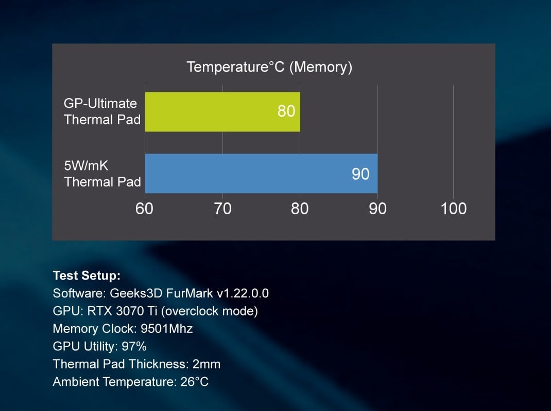 GP-Ultimate 120×20 jest nieprzewodzący elektryczności, niekorozyjny, nieutwardzający się i obsługuje rozszerzony zakres temperatur pracy od -60°C do 220°C. Charakteryzuje się bezproblemową aplikacją i ma wymiary podkładki termicznej 120x20 mm, aby najlepiej dopasować się do powiększonych powierzchni modułów pamięci RAM, obwodów VRM GPU i CPU, dysków SSD typu M.2 i innych gęsto upakowanych urządzeń elektronicznych.