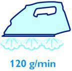 posiada zbiornik na wodę o pojemności 1 l. Ciągły strumień pary o maksymalnej mocy 120 g/min i silne uderzenie pary o mocy 220 g/min gwarantują idealne i szybkie rozprasowanie zagnieceń.
